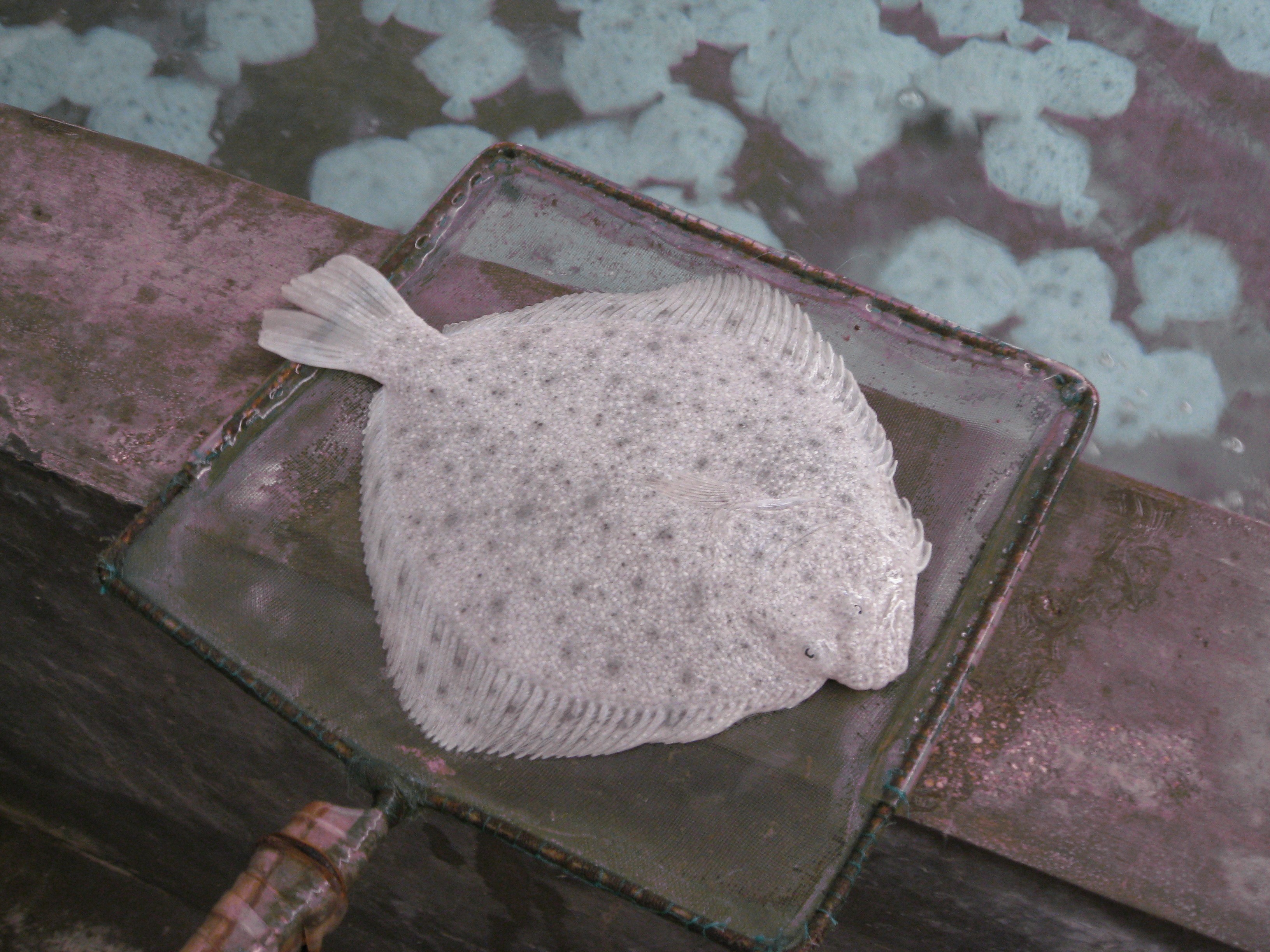 體型較為整齊、統(tǒng)一,所選新品種具有顯著的體型標(biāo)記。同《大菱鲆:中華人民共和國水產(chǎn)行業(yè)標(biāo)準(zhǔn)(SC-2051-2007)》相比較,反應(yīng)大菱鲆體型的主要指標(biāo)體長/體高為1.23±0.04,標(biāo)準(zhǔn)的范圍是1.18-1.44,位于標(biāo)準(zhǔn)的下限。同時,體長/體高的標(biāo)準(zhǔn)差較小,其商品魚的體型較為一致。遺傳純度較高,體長、體高和體長/體高的變異系數(shù)分別是3.61%、4.59%和3.27%;體重的變異系數(shù)是6.95%?!岸鄬?號”具有生長快、成活率高、遺傳純度高的經(jīng)濟(jì)特征,提高了大菱鲆的經(jīng)濟(jì)效益。經(jīng)養(yǎng)殖對比,“多寶1號”比普通大菱鲆平均體重和成活率分別提高36%和25%,主要經(jīng)濟(jì)性狀遺傳穩(wěn)定性達(dá)到90%以上。適宜在我國沿海人工可控的海水水體或地下井水水體中養(yǎng)殖。