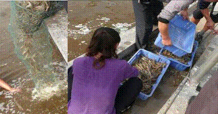 對(duì)蝦收獲現(xiàn)場(chǎng)
