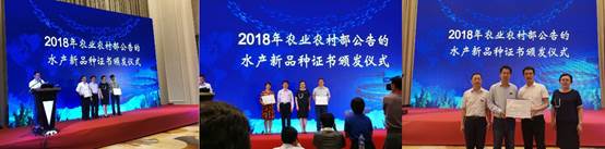 5月31日,2018全球水產(chǎn)養(yǎng)殖論壇水產(chǎn)種業(yè)發(fā)展分論壇在福州召開。會上舉行了2018年農(nóng)業(yè)農(nóng)村部公告的水產(chǎn)新品種證書頒發(fā)儀式。黃海水產(chǎn)研究所脊尾白蝦“黃育1號”(GS-01-005-2017),中國對蝦“黃海5號”(GS-01-008-2017)和刺參“參優(yōu)1號”(GS-01-016-2017)獲批水產(chǎn)新品種。農(nóng)業(yè)農(nóng)村部漁業(yè)漁政管理局養(yǎng)殖處處長陳家勇和全國水產(chǎn)技術(shù)推廣總站副站長胡紅浪分別為新品種課題組代表李吉濤副研究員、孟憲紅研究員、王印庚研究員頒發(fā)證書。