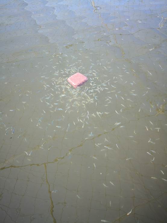 驗收專家聽取了課題組的工作匯報,查看了相關(guān)試驗記錄和黃條鰤親魚及苗種,并進(jìn)行了取樣測量、計數(shù),確認(rèn)課題組利用黃條鰤專用親魚池現(xiàn)保育4-5齡成熟親魚328尾,通過人工綜合調(diào)控達(dá)到自然產(chǎn)卵;采用工程化池塘育苗技術(shù)方法,使用自主設(shè)計建造的室外工程化小型連體池塘系統(tǒng),共培育出平均全長4.7- 8.6cm的黃條鰤苗種40.32萬尾,首次實現(xiàn)了黃條鰤工程化池塘苗種規(guī)?;嘤某晒Α?/p>