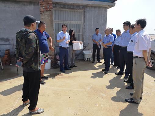 專家聽取刺參養(yǎng)殖池塘底部蓄冷降溫技術(shù)的實施情況