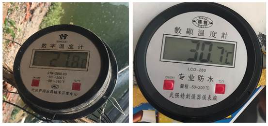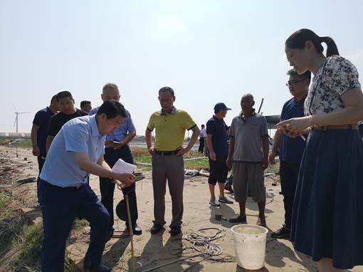 專家現(xiàn)場監(jiān)測池塘底部水溫