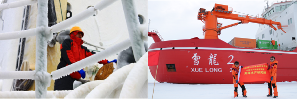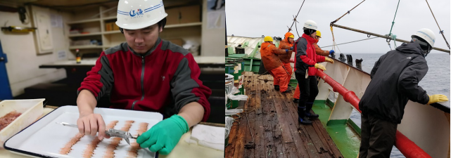 圖3.(左:磷蝦資源探捕調(diào)查;右:王新良、許慶昌參加中國(guó)第36次南極科學(xué)考察)