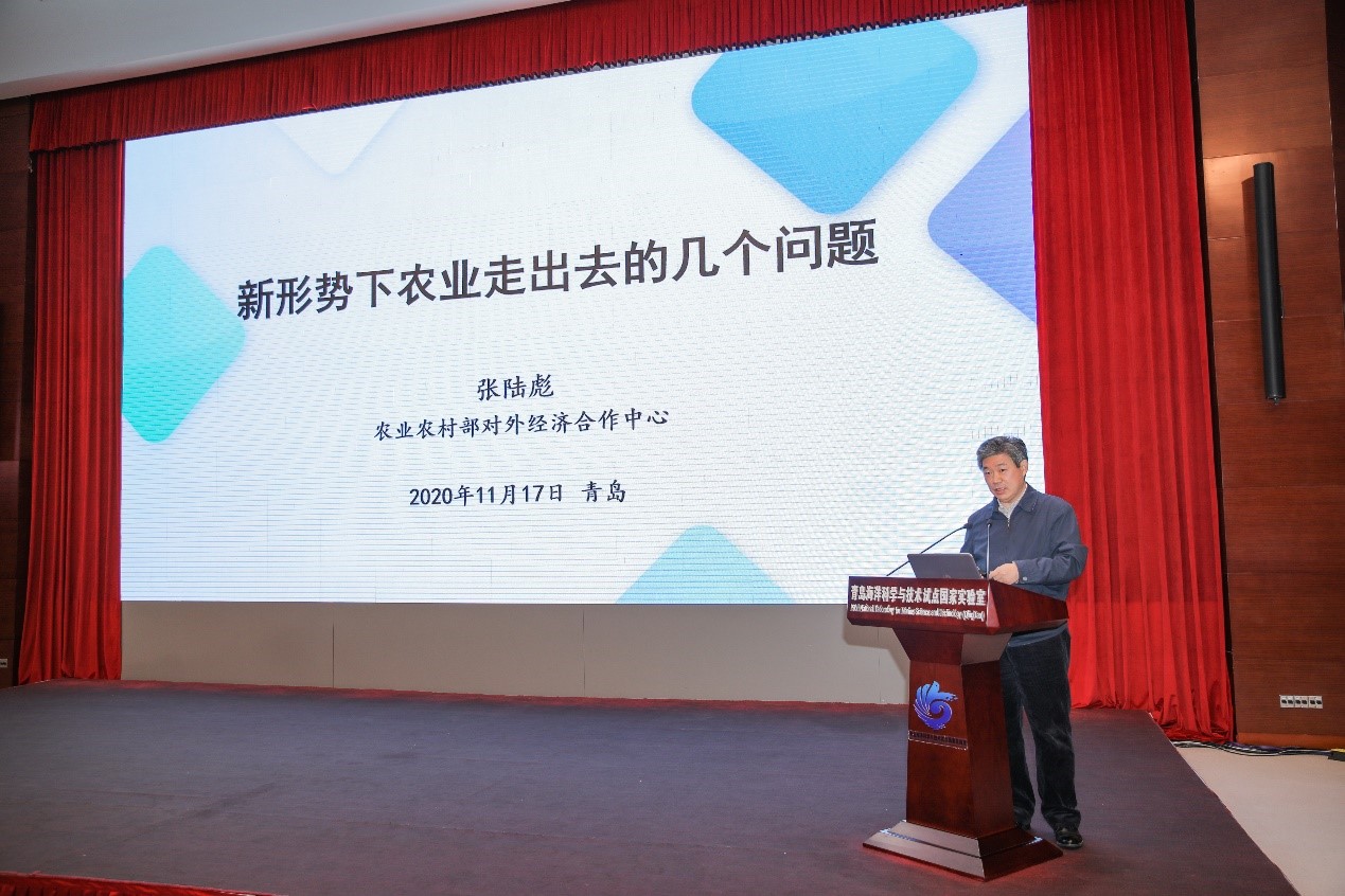 11月17日,由農(nóng)業(yè)農(nóng)村部國際合作司主辦、中國水產(chǎn)科學研究院黃海水產(chǎn)研究所農(nóng)業(yè)農(nóng)村部“一帶一路”海水養(yǎng)殖技術(shù)培訓(xùn)基地和青島市海洋發(fā)展局共同承辦的農(nóng)業(yè)農(nóng)村部2020年“揚帆出?!比瞬排嘤?xùn)工程——漁業(yè)“走出去”國際合作能力建設(shè)培訓(xùn)班在青島海洋科學與技術(shù)試點國家實驗室舉辦。農(nóng)業(yè)對外合作部際聯(lián)席會議辦公室常務(wù)副主任、農(nóng)業(yè)農(nóng)村部對外經(jīng)濟合作中心主任張陸彪,中國水產(chǎn)科學研究院副院長劉英杰,青島市海洋發(fā)展局副局長王曉訓(xùn),青島海洋科學與技術(shù)試點國家實驗室副主任莊志猛,黃海水產(chǎn)研究所所長金顯仕、副所長李健,以及培訓(xùn)班全體學員共計80余人參加了開班儀式。開班儀式由李健副所長主持。