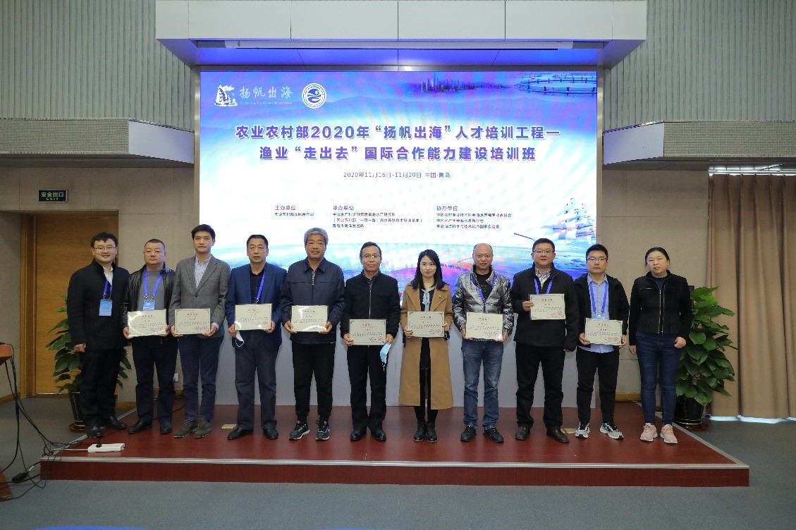 11月16日至20日,由農(nóng)業(yè)農(nóng)村部國(guó)際合作司主辦,中國(guó)水產(chǎn)科學(xué)研究院黃海水產(chǎn)研究所農(nóng)業(yè)農(nóng)村部“一帶一路”海水養(yǎng)殖技術(shù)培訓(xùn)基地和青島市海洋發(fā)展局承辦,中國(guó)農(nóng)村專業(yè)技術(shù)協(xié)會(huì)海水養(yǎng)殖專業(yè)委員會(huì)、中國(guó)水產(chǎn)學(xué)會(huì)海水養(yǎng)殖分會(huì)、青島海洋科學(xué)與技術(shù)試點(diǎn)國(guó)家實(shí)驗(yàn)室協(xié)辦的農(nóng)業(yè)農(nóng)村部2020年“揚(yáng)帆出?!比瞬排嘤?xùn)工程——漁業(yè)“走出去”國(guó)際合作能力建設(shè)培訓(xùn)班在青島成功舉辦。來自天津、遼寧、河北、上海、江蘇、浙江、福建、山東、廣東、海南、廣西等11個(gè)?。▍^(qū)、市)的漁業(yè)行政主管部門和漁業(yè)“走出去”重點(diǎn)企業(yè)相關(guān)負(fù)責(zé)人57人在青島進(jìn)行了4天的培訓(xùn)學(xué)習(xí)。
