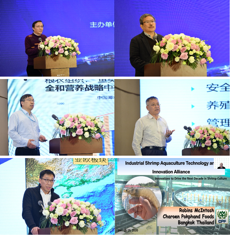 在論壇學術報告環(huán)節(jié),中國水產科學研究院方輝處長作了題為“深藍漁業(yè)科技創(chuàng)新戰(zhàn)略研究”報告,強調深藍漁業(yè)是漁業(yè)發(fā)展史上的一次重大革命,將成為極具潛力的戰(zhàn)略性新興產業(yè);李健副所長重點就實現海水綠色養(yǎng)殖發(fā)展的路徑進行了闡述;中國水產科學研究院漁業(yè)機械儀器研究所諶志新研究員以“深遠海智能化養(yǎng)殖漁場發(fā)展規(guī)劃研究”為主題,介紹了國內外深遠海養(yǎng)殖進展;中國科學院海洋研究所王雷研究員的報告剖析了工廠化養(yǎng)蝦的關鍵控制點分析與操作要點;青島藍色糧倉海洋漁業(yè)發(fā)展有限公司總經理劉敏著重探討了中國深遠海養(yǎng)殖品種選擇與工藝;正大食品全球副總裁羅賓斯·麥金托什以視頻形式作了題為“未來十年,推動對蝦養(yǎng)殖業(yè)發(fā)展的幾個創(chuàng)新”的專題報告。