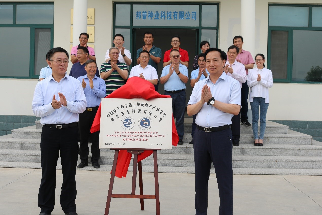 金顯仕所長、陳丹董事長、孔杰副所長、李明杰副書記分別為“對蝦種業(yè)研發(fā)基地”“對蝦育種聯(lián)合實驗室”揭牌。會后,與會嘉賓實地參觀了邦普種業(yè)科技有限公司“育繁推”一體化聯(lián)合育種基地,并與公司人員進行了深入的溝通與交流。