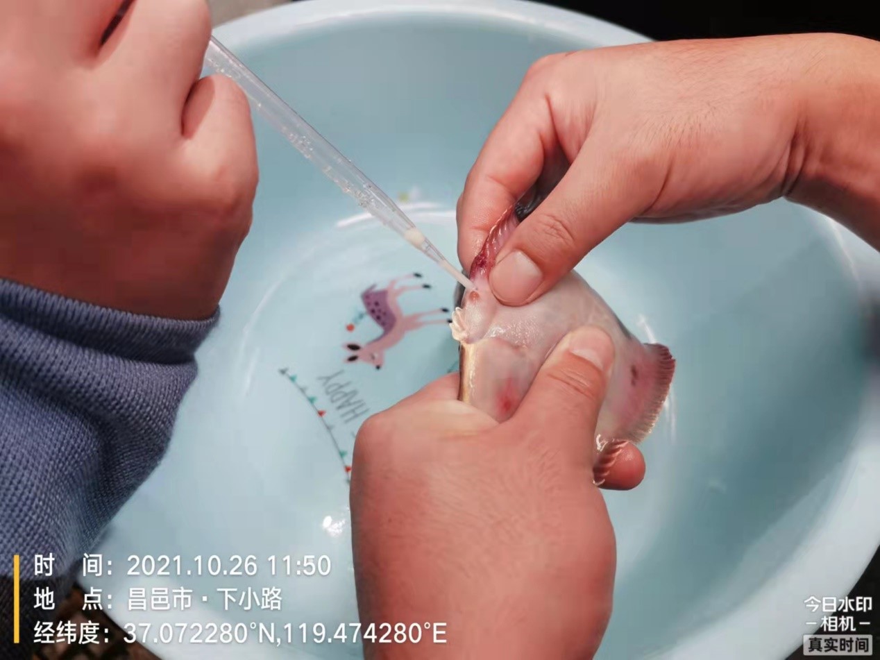 9月底至10月底,調(diào)查組奔赴6個(gè)調(diào)查單位開展半滑舌鰨種質(zhì)資源調(diào)查工作。期間,按照《水產(chǎn)養(yǎng)殖種質(zhì)資源基礎(chǔ)信息表》要求,詳細(xì)記錄各調(diào)查單位養(yǎng)殖、育種和保種情況以及生產(chǎn)情況;按照《魚類樣品采集技術(shù)規(guī)范》要求,對半滑舌鰨進(jìn)行生物學(xué)特性測量,完成用于進(jìn)行品質(zhì)、遺傳多樣性指標(biāo)、生理生化指標(biāo)檢測樣本的收集工作;按照《魚類種質(zhì)資源遺傳材料制作規(guī)范》要求,完成各個(gè)調(diào)查點(diǎn)標(biāo)本、基因、細(xì)胞種質(zhì)資源的采集和制作。調(diào)查組結(jié)合半滑舌鰨育種和養(yǎng)殖情況,選擇位于海陽市黃海水產(chǎn)有限公司的鲆鰈魚類遺傳育種中心和掛靠在唐山市維卓水產(chǎn)養(yǎng)殖有限公司的河北省半滑舌鰨良種場進(jìn)行活體保存,活體后備親本規(guī)模累計(jì)達(dá)到1.5萬尾以上。