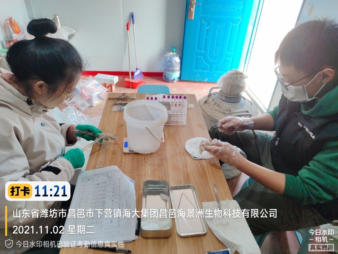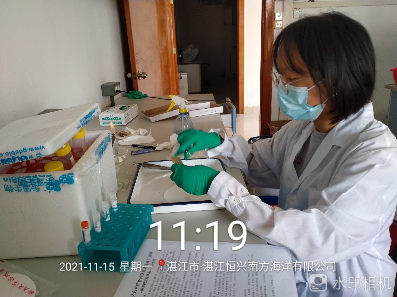 調(diào)查小組克服疫情反復(fù)、調(diào)查點(diǎn)多且分布較遠(yuǎn)、樣品超低溫運(yùn)輸困難等不利因素,科學(xué)制定采樣方案并迅速采取行動(dòng)。10月至12月,調(diào)查小組先后對(duì)邦普種業(yè)科技有限公司、廣東海大集團(tuán)現(xiàn)代漁業(yè)生態(tài)養(yǎng)殖示范園、天津興盛海淡水養(yǎng)殖有限責(zé)任公司、河北鑫海水產(chǎn)生物技術(shù)有限公司、海南中正水產(chǎn)科技有限公司、廣東恒興集團(tuán)有限公司863基地、廣東南美白對(duì)蝦遺傳育種中心、廣西南美白對(duì)蝦遺傳育種中心、廣東海茂水產(chǎn)種業(yè)科技有限公司、浙江省海洋水產(chǎn)養(yǎng)殖研究所等10個(gè)點(diǎn)開(kāi)展調(diào)查采樣。調(diào)查小組嚴(yán)格按照《蝦類樣品采集技術(shù)規(guī)范》進(jìn)行生物學(xué)特性測(cè)量,根據(jù)調(diào)查點(diǎn)的單位類型、生產(chǎn)情況等信息認(rèn)真填寫《水產(chǎn)養(yǎng)殖種質(zhì)資源基礎(chǔ)信息表》,共獲取數(shù)據(jù)4600余條,按照檢測(cè)任務(wù)活體取樣740余份。