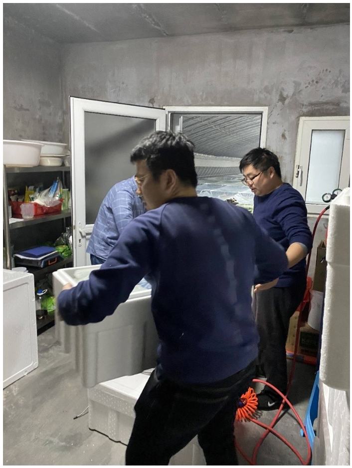 “2月份以來(lái)正是春季種蝦生產(chǎn)、銷售的高峰期,由于今年全國(guó)多地爆發(fā)疫情,航班取消、公路設(shè)卡、鄉(xiāng)村封路,空運(yùn)、陸運(yùn)都不暢通。為了不耽誤育苗場(chǎng)育苗和養(yǎng)殖戶養(yǎng)殖,及時(shí)把種蝦送到育苗企業(yè),我們會(huì)同時(shí)聯(lián)系多個(gè)機(jī)場(chǎng),哪里有航班就從哪里發(fā),什么時(shí)間有航班就什么時(shí)間發(fā),加班加點(diǎn)都是常事。有時(shí)候需要高強(qiáng)度挑蝦、打包、裝卸,上午發(fā)完一批,下午再發(fā)一批,凌晨可能還要發(fā)一批。為了確保種蝦陸運(yùn)過(guò)程中的安全性,我們有時(shí)深夜驅(qū)車跟著運(yùn)輸車,到了接力地點(diǎn)再進(jìn)行搬運(yùn)、裝車,直至種蝦接力運(yùn)輸?shù)搅俗詈笠话簦篷{車返回?!秉h員曹家旺作為種蝦養(yǎng)殖的技術(shù)人員,已連續(xù)數(shù)月堅(jiān)守在生產(chǎn)一線。