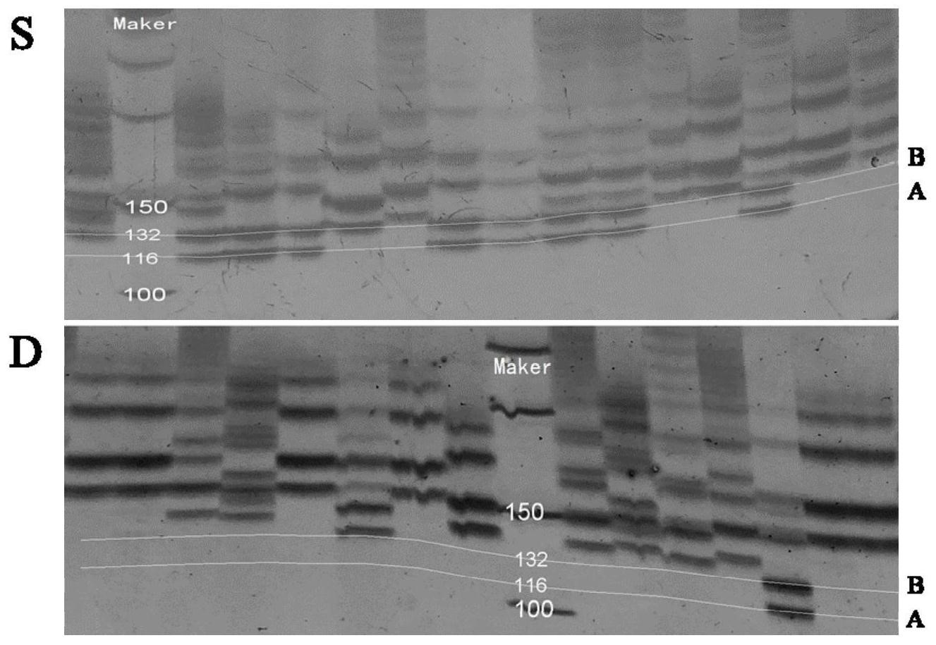 本發(fā)明涉及一個與紅鰭東方鲀耐低溫相關(guān)的微衛(wèi)星標(biāo)記及其應(yīng)用,屬于魚類DNA標(biāo)記技術(shù)與應(yīng)用領(lǐng)域,具體涉及紅鰭東方鲀耐低溫分子標(biāo)記的篩選,以及利用標(biāo)記進(jìn)行分子標(biāo)記輔助育種。利用BSA?SSR技術(shù)篩選到1個與紅鰭東方鲀耐低溫相關(guān)的微衛(wèi)星標(biāo)記(fms108),其引物序列為正向:AACATGCGACAGAACTGACTG,反向:TCCACAGCCAATGTTAATGG。根據(jù)此標(biāo)記可以進(jìn)行育種親本的選擇,從而提高后代的耐低溫性能。