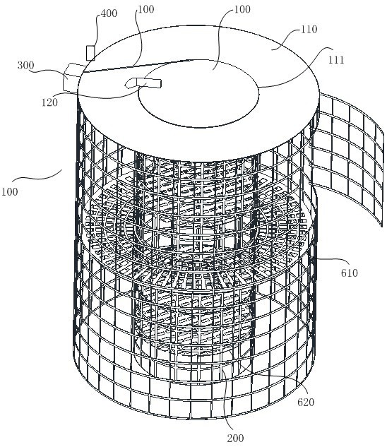 本發(fā)明公開一種筏式立體養(yǎng)殖裝置及養(yǎng)殖方法,包括有:第一養(yǎng)殖網(wǎng)箱;第二養(yǎng)殖網(wǎng)箱,其可拆的設(shè)置在第一養(yǎng)殖網(wǎng)箱內(nèi),在第二養(yǎng)殖網(wǎng)箱內(nèi)形成有第一養(yǎng)殖空間,在第二養(yǎng)殖網(wǎng)箱上設(shè)置有攝像元件和水溫檢測元件,在第二養(yǎng)殖網(wǎng)箱和第一養(yǎng)殖網(wǎng)箱之間有第二養(yǎng)殖空間;第一承載部件,環(huán)繞第二養(yǎng)殖網(wǎng)箱設(shè)置;第二承載部件,設(shè)置在第二養(yǎng)殖網(wǎng)箱內(nèi),設(shè)置有多個(gè),沿第二養(yǎng)殖網(wǎng)箱的高度方向設(shè)置,相鄰的2個(gè)第一承載部件之間具有間距;主控器,與攝像元件、水溫檢測元件通訊連接。