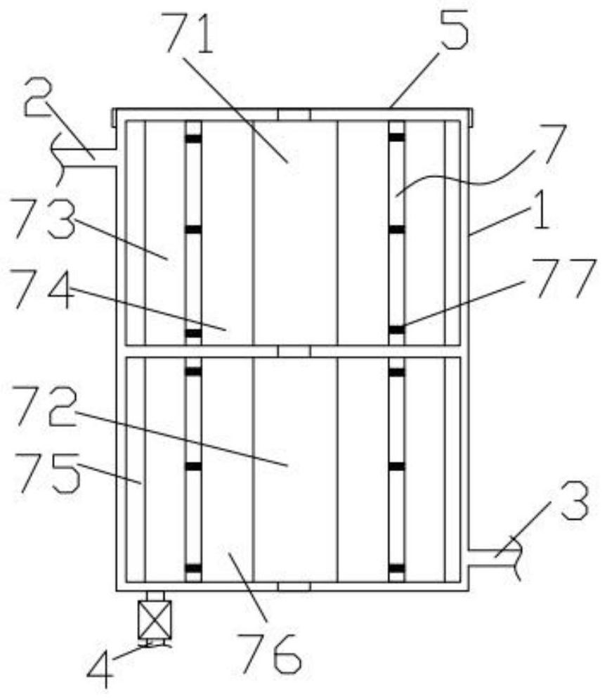 本發(fā)明屬于船舶熱水供應(yīng)領(lǐng)域,更具體的涉及一種船舶用內(nèi)壁防劃傷自動除垢熱水箱。包括箱體和設(shè)置在箱體上的進(jìn)水口和出水口,箱體頂部有一可以打開的蓋體,底部設(shè)置有排污口,箱體內(nèi)部設(shè)置有加熱器,包括設(shè)置于所述箱體內(nèi)的用于刮除箱體內(nèi)部表面的水垢刮除器,用于提供動力的驅(qū)動裝置,以及用于控制水垢刮除器和驅(qū)動機(jī)構(gòu)的控制器;所述水垢刮除器包括一與所述蓋體活動連接的動力刮板,以及一與箱體底部活動連接的從動刮板,所述動力刮板與從動刮板之間設(shè)置有用于連接動力刮板與從動刮板的轉(zhuǎn)動連接裝置,所述動力刮板與電機(jī)連接,從動刮板與動力刮板沿相反方向運(yùn)動;變向推板前端的運(yùn)動方向改變電機(jī)的轉(zhuǎn)動方向,始終使變向推板處于刮除水垢的狀態(tài)。