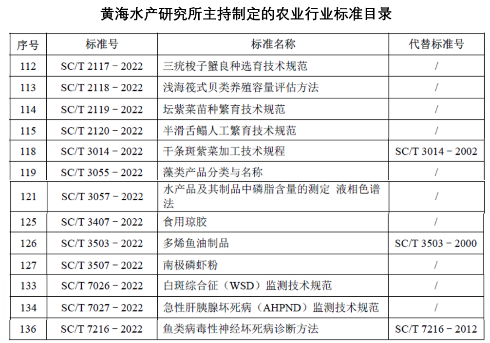 11月11日,農(nóng)業(yè)農(nóng)村部印發(fā)《中華人民共和國農(nóng)業(yè)農(nóng)村部公告第618號》,公布了160項經(jīng)專家審定通過的農(nóng)業(yè)行業(yè)標準,自2023年3月1日起實施。由中國水產(chǎn)科學研究院黃海水產(chǎn)研究所科研人員牽頭主持完成的13項農(nóng)業(yè)行業(yè)標準正式獲批發(fā)布,其中包括良種選育規(guī)范4項、水產(chǎn)品加工領域6項及病害監(jiān)測技術規(guī)范3項。以上標準的發(fā)布和實施,有利于規(guī)范和引導水產(chǎn)養(yǎng)殖、病害防控、水產(chǎn)加工行業(yè)的發(fā)展,對提高漁業(yè)管理水平、促進產(chǎn)業(yè)可持續(xù)發(fā)展和規(guī)范市場行為等方面發(fā)揮重要作用。