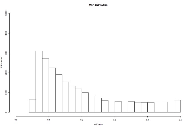“魚芯1號”基因芯片SNP位點(diǎn)最小等位基因頻率分布圖