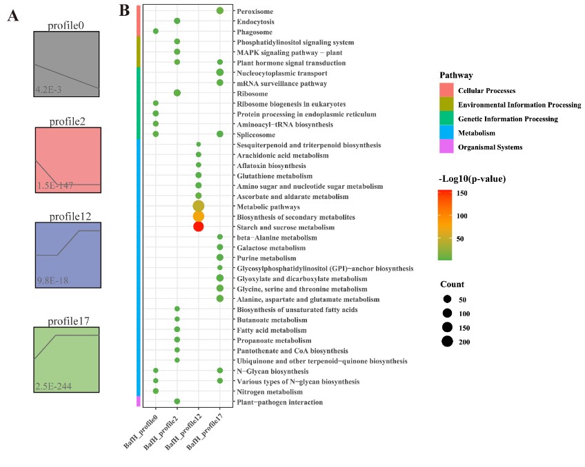 圖1. 紅毛菜在高鹽條件下差異表達基因的趨勢分析