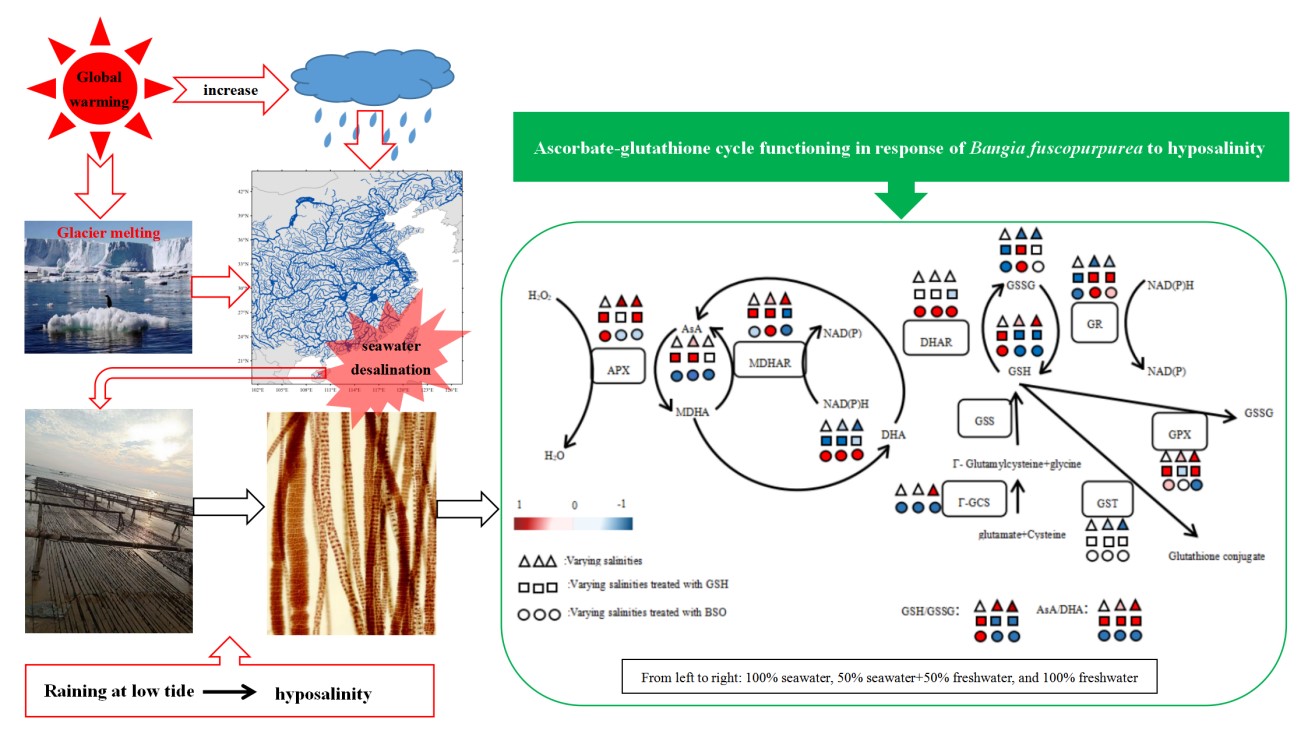 圖4. 紅毛菜AsA-GSH循環(huán)在低鹽脅迫下的響應
