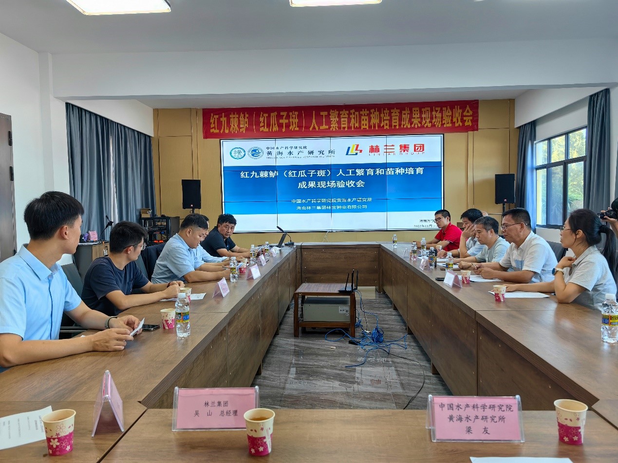11月10日,中國水產(chǎn)科學研究院黃海水產(chǎn)研究所組織專家在海南省萬寧市林蘭集團林寶種業(yè)有限公司對黃海水產(chǎn)研究所陳松林院士主持、該公司參與完成的山東省重點研發(fā)計劃項目(院士創(chuàng)新專項)“海水魚類精準育種技術(shù)創(chuàng)建與種質(zhì)創(chuàng)制”中有關(guān)紅九棘鱸(紅瓜子斑)人工繁育和苗種培育的階段性成果進行了現(xiàn)場驗收。驗收專家組由中山大學生命科學學院劉曉春教授、海南大學海洋學院院長周永燦教授、海南熱帶海洋學院水產(chǎn)與生命學院副院長黃海教授組成。萬寧市副市長鄭忠發(fā)、萬寧市海洋漁業(yè)協(xié)會會長葉慧強、海南省海洋產(chǎn)業(yè)集團代表等參加了驗收會。