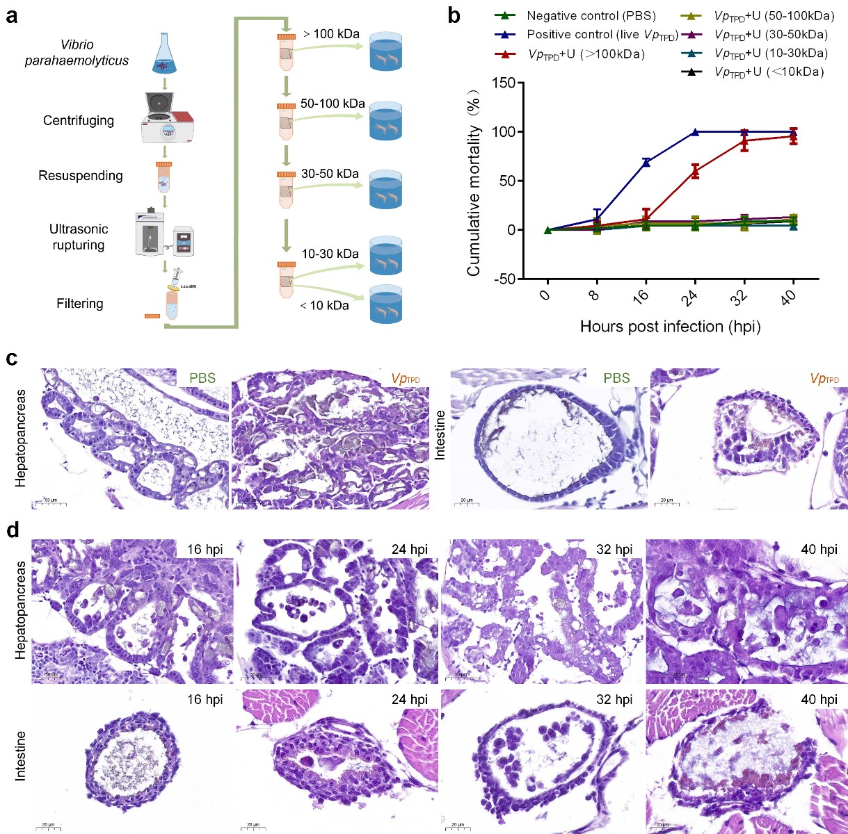 圖1 致玻璃苗弧菌毒力蛋白致病力和致病病理特征分析