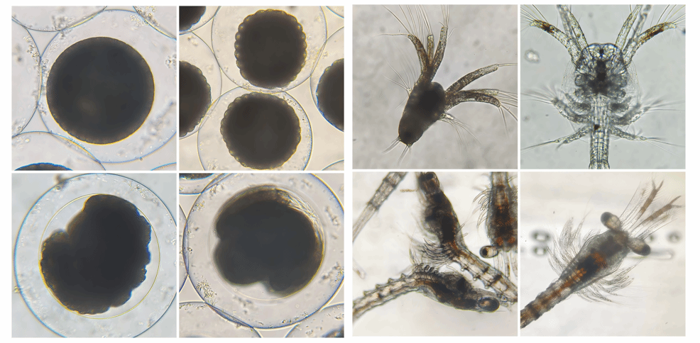 經(jīng)現(xiàn)場(chǎng)統(tǒng)計(jì),中國(guó)對(duì)蝦“黃海6號(hào)”共構(gòu)建良種家系118個(gè),每個(gè)家系標(biāo)準(zhǔn)化留種個(gè)體數(shù)量為2000尾,發(fā)育階段為仔蝦(P10–P21)。擴(kuò)繁苗種總量達(dá)12.5萬尾,標(biāo)準(zhǔn)化生產(chǎn)苗種數(shù)量達(dá)2.55億尾,發(fā)育階段均為仔蝦。現(xiàn)場(chǎng)抽檢結(jié)果顯示,苗種個(gè)體整齊,體色正常,胃腸充盈,活力旺盛,整體健康狀況良好。