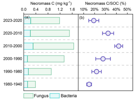 不同歷史時期微生物殘體的含量及在總有機碳中的比例