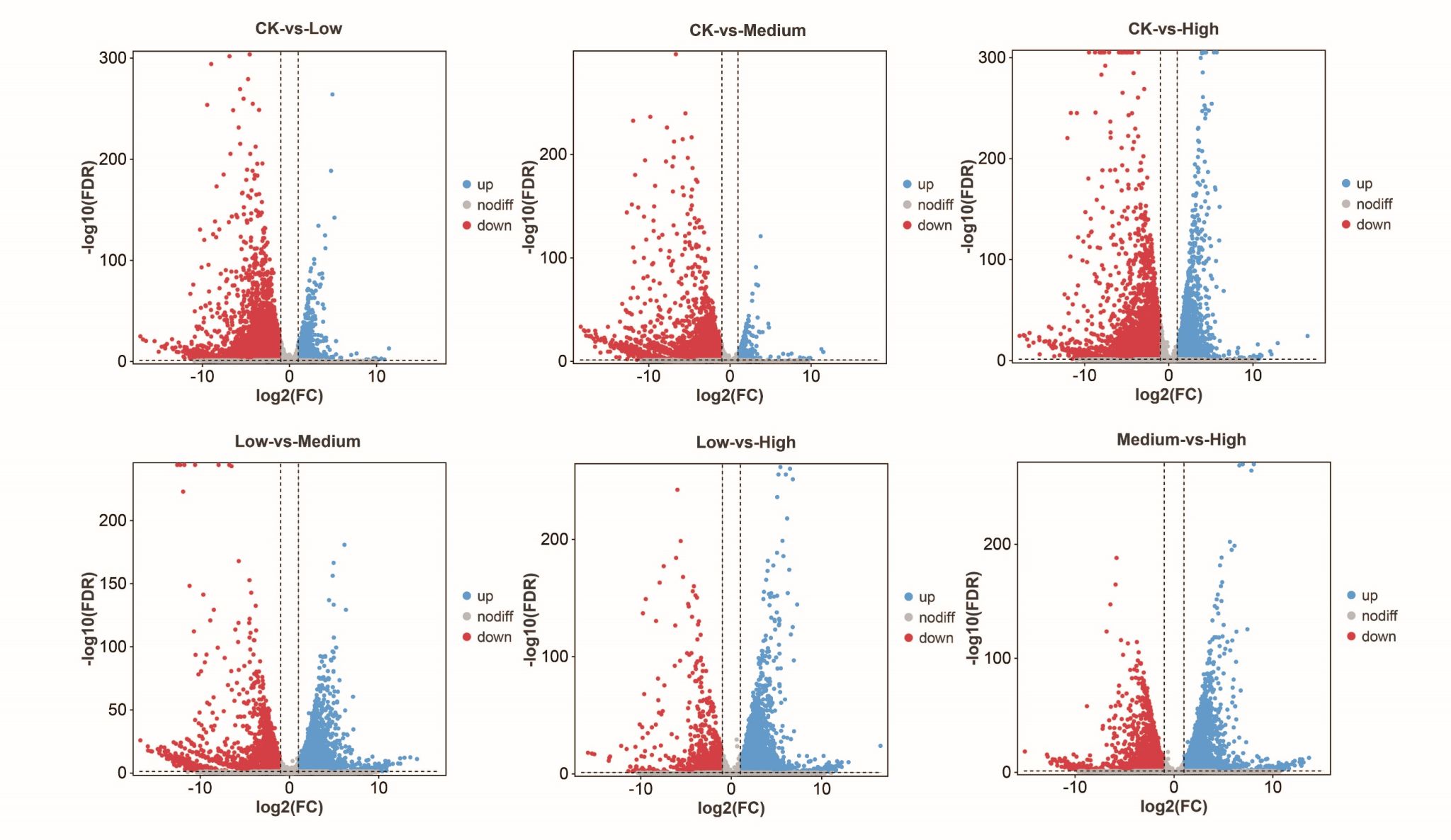 多組差異表達(dá)基因火山圖