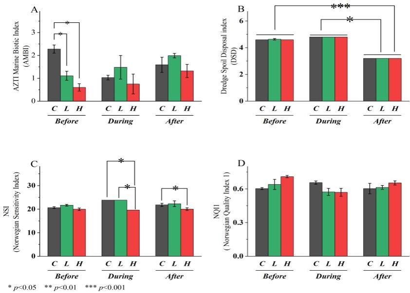 近期,中國水產(chǎn)科學(xué)研究院黃海水產(chǎn)研究所灘涂增養(yǎng)殖與生境修復(fù)團(tuán)隊(duì)在淺海灘涂生態(tài)系統(tǒng)健康評價(jià)研究方面取得開創(chuàng)性進(jìn)展。在上級主管部門的支持下,團(tuán)隊(duì)在國內(nèi)率先開展了拖曳泵吸與水沖齒耙耙刺機(jī)械化采捕方式對底棲生境的影響研究。研究聚焦山東萊州灣小清河口及遼寧蛤蜊崗等典型灘涂貝類增養(yǎng)殖區(qū),采用基于沉積物大型底棲動物為目標(biāo)種的AMBI(底棲生物指數(shù))與M-AMBI(多變量底棲生物指數(shù))等評價(jià)方法,結(jié)合BACI(Before - After - Control - Impact)實(shí)驗(yàn)設(shè)計(jì),系統(tǒng)解析了不同采捕方式對底棲生態(tài)系統(tǒng)健康狀況的影響,重點(diǎn)闡明了萊州灣拖曳水沖齒耙耙刺捕撈單環(huán)刺螠對底棲群落結(jié)構(gòu)的生態(tài)效應(yīng)。