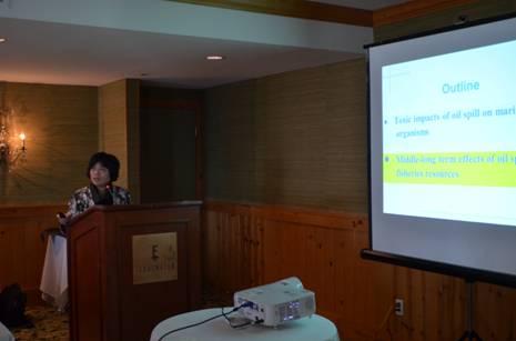 會上,曲克明研究員作了題為“Technology of Assessing Marine Fishery Resources Losses Caused by Oil Spill ”和“Advances in wastewater recycling technology of marine recirculating aquaculture systems(RAS)”的報告,介紹了黃海所在海洋溢油污染應(yīng)急處置、管理以及海洋循環(huán)水養(yǎng)殖上取得的成果;陳碧鵑研究員作了題為“Toxic impacts and middle-long term effects of oil spill on marine organisms”,介紹了黃海所在溢油污染對海洋生物的毒性影響及對漁業(yè)資源的中長期效應(yīng)等方面取得的成果。會議期間,中美專家對雙方工作組第9次會議以來開展的合作與交流進(jìn)行了回顧和總結(jié),并就進(jìn)一步開展學(xué)術(shù)互訪及合作研究達(dá)成了初步意向。