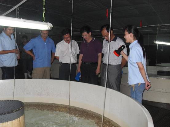 9月2日,農(nóng)業(yè)部科教司產(chǎn)業(yè)技術(shù)處張國(guó)良處長(zhǎng)、農(nóng)業(yè)部漁業(yè)局養(yǎng)殖處于秀娟處長(zhǎng)、水科院科技處劉英杰處長(zhǎng)等領(lǐng)導(dǎo)到萊州明波水產(chǎn)有限公司檢查指導(dǎo)鲆鰈類(lèi)產(chǎn)業(yè)體系萊州試驗(yàn)站的工作。黃海所李健副所長(zhǎng)和鲆鰈類(lèi)產(chǎn)業(yè)體系崗位科學(xué)家等陪同考察。