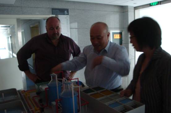 環(huán)境室主任馬紹賽研究員向Mark D. Powell教授介紹循環(huán)水系統(tǒng)
