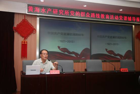 9月2日,黃海水產(chǎn)研究所舉辦黨的群眾路線教育實(shí)踐活動黨課輔導(dǎo)報(bào)告會。在青所領(lǐng)導(dǎo),全體職工、學(xué)生代表參加了報(bào)告會。中國水產(chǎn)科學(xué)研究院黨的群眾路線教育活動第三督導(dǎo)組副組長、原東海所黨委書記樊強(qiáng)國到會指導(dǎo)。報(bào)告會由金顯仕所長主持。