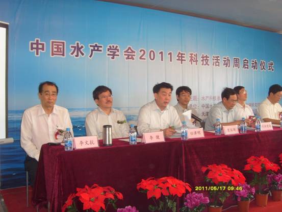 開幕式由中國水產(chǎn)學會副秘書長曲宇風主持,天津立達集團總經(jīng)理任津明致歡迎詞。天津市水產(chǎn)局局長錢品席、天津市科協(xié)主席楊鑫傳、天津市農(nóng)委副主任張世偉、中國水產(chǎn)科學研究院副院長崔國輝和中國水產(chǎn)學會副理事長、秘書長司徒建通先后講話。