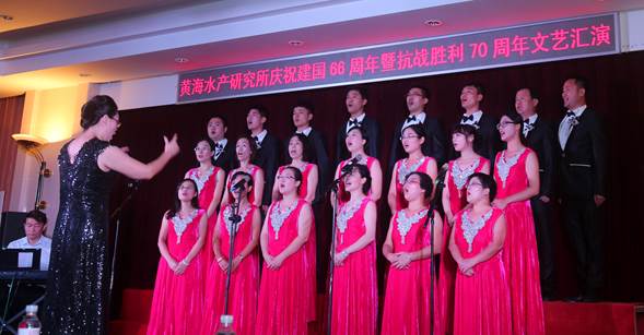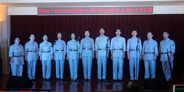 9月29日,黃海水產(chǎn)研究所舉辦慶祝建國66周年暨紀念抗日戰(zhàn)勝利70周年文藝匯演,所領導、在職和離退休職工、研究生共200余人觀看了演出。
