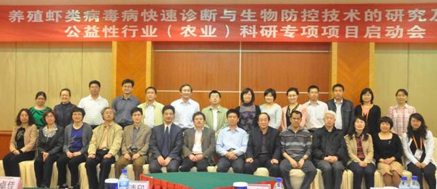 4月9日,由黃海所聯(lián)合國內9家科研院所和高校共同承擔的農業(yè)部公益性行業(yè)(農業(yè))科研專項項目 “養(yǎng)殖蝦類病毒病快速診斷與生物防控技術的研究及示范”在廣東省湛江市召開了項目啟動會議。項目承擔單位的專家、學者及國內部分對蝦養(yǎng)殖龍頭企業(yè)的代表參加了會議,黃海所所長王清印到會并致辭。