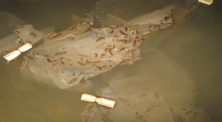 專家組聽取了項目組工作匯報,并進行了現(xiàn)場查看和隨機抽樣測量,一致確認:項目組在1300平方米的育苗池中,共培育出參苗410萬頭,參苗平均體重4.48克(最大體重15.5克,最小體重0.4克),平均規(guī)格220頭/kg,參苗活力強,健康狀況良好。