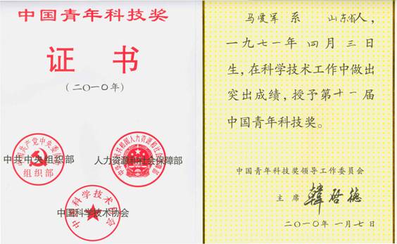 2010年1月13日,第十一屆中國青年科技獎頒獎大會在北京中國科技會館舉行,黃海所馬愛軍研究員榮獲本屆中國青年科技獎榮譽稱號。
