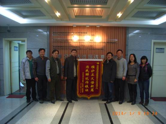 1月9日,河北省唐山市養(yǎng)殖漁民代表來(lái)到黃海水產(chǎn)研究所,送上一面題字“維護(hù)正義譜新篇,為民解憂作鐵證”的錦旗,對(duì)黃海所一年來(lái)為維護(hù)唐山市漁業(yè)和漁民權(quán)益所做的工作表示感謝。李健副所長(zhǎng)代表黃海所接受了錦旗。