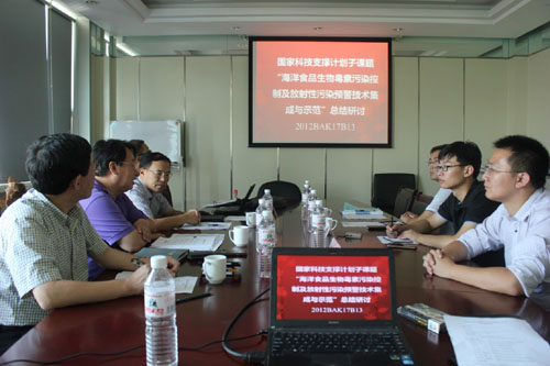 9月19日‐20日,黃海水產(chǎn)研究所周德慶研究員作為技術(shù)負(fù)責(zé)人主持的國家科技支撐計劃“海洋食品生物毒素污染控制及放射性污染預(yù)警技術(shù)集成與示范”課題階段性總結(jié)研討會在黃海所召開。來自煙臺出入境檢驗檢疫局、榮成泰祥食品股份有限公司的研究任務(wù)負(fù)責(zé)人和研究骨干參加了會議。會議由周德慶主持。