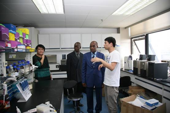座談后,在辛福言副所長(zhǎng)的陪同下,貝爾納部長(zhǎng)一行參觀了水產(chǎn)基因組與細(xì)胞工程研究室,并與有關(guān)專家進(jìn)行了交流。