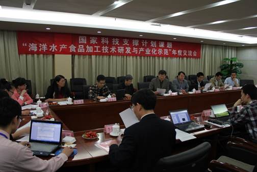 4月26日,國家科技支撐計(jì)劃課題“海洋水產(chǎn)食品加工技術(shù)研發(fā)與產(chǎn)業(yè)化示范” 2013年度會議在榮成石島召開。 會議由中國海洋大學(xué)組織,黃海水產(chǎn)研究所和榮成泰祥食品股份有限公司共同承辦。浙江工商大學(xué)、福建安井食品股份有限公司、上海海洋大學(xué)、浙江省海洋開發(fā)研究院等單位的相關(guān)專家、科研人員、財務(wù)管理人員以及研究生等20余人參加了本次年度會議。