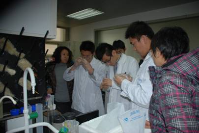 聯(lián)歡會上,病研室主任黃倢首先對2010年度工作進展進行了扼要總結(jié),對全室職工、學生提出新年期許;并對由全室職工和學生通過自薦、互薦、投票等方式,評選出的勤務之星、活力之星、進步之星、技能之星和關(guān)懷之星等5個單項獎的優(yōu)秀學生進行了表彰;隨后,將學生分為兩隊,開始了緊張激烈的“實驗競技大賽”,分別對六項實驗技能進行比賽,整個實驗過程由相關(guān)老師負責監(jiān)督及評分;趣味愉悅的“快樂猜猜猜”和挑戰(zhàn)無限的“智力大比拼”,將比賽推向了高潮。通過比賽,既加強了學生的實驗技能,又促進了團隊的團結(jié)協(xié)助精神,為以后的科研工作順利開展奠定了良好的基礎(chǔ)。