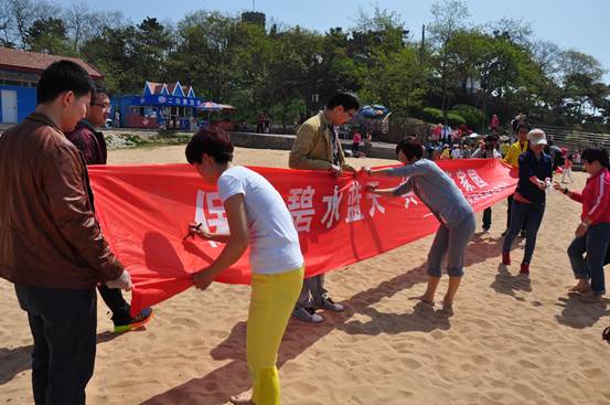 在清理垃圾的同時,志愿者們還向海邊的游客宣傳生態(tài)環(huán)保知識,在活動現(xiàn)場,游客紛紛在寫有“保護碧水藍天 共建綠色家園”的橫幅上簽下自己的名字,寫下了從我做起,從現(xiàn)在做起,共同維護生態(tài)環(huán)境,攜手建設美好家園的決心。