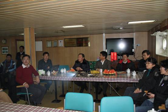 所領(lǐng)導首先聽取了“北斗”號調(diào)查船2011年的工作總結(jié)以及船舶運行狀況匯報,實地查看了船舶駕駛室和機艙等重點部位。針對“北斗”號的工作現(xiàn)狀和存在的問題,所長王清印發(fā)表了重要講話,他代表所領(lǐng)導班子對“北斗”號調(diào)查船全體船務(wù)人員為黃海所科技事業(yè)做出的貢獻表示感謝,對大家一年來保持船舶安全運行,圓滿完成各項任務(wù),表示誠摯的問候。他說,“北斗”號多年來為我國的海洋科技事業(yè)做出了重要貢獻,曾被農(nóng)業(yè)部授予的“功勛號調(diào)查船”,“北斗”號取得的成績離不開每一位船務(wù)人員的辛勤勞動,也得到了所內(nèi)外的普遍好評。王清印所長對“北斗”號今后的工作提出了希望和要求,勉勵大家繼續(xù)發(fā)揚“北斗”號的光榮傳統(tǒng)和團隊精神,團結(jié)一致,密切協(xié)作,爭取完成更多的調(diào)查任務(wù),為我國的海洋科學事業(yè)再立新功;并重點強調(diào)了船舶的安全,要求大家一定要強化管理、把船舶維護保養(yǎng)好,確保船舶安全運行。各位所領(lǐng)導也對“北斗”號各位船務(wù)工作者提出了要求和希望,共同祝愿“北斗”號調(diào)查船為我國的海洋科技事業(yè)做出更大的成績。