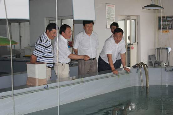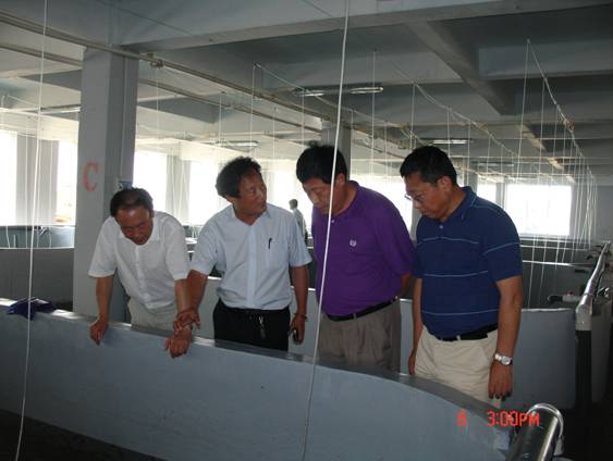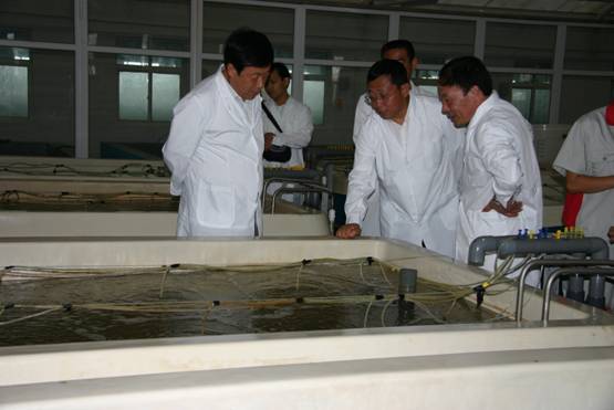 7月6日,農(nóng)業(yè)部國家首席獸醫(yī)師于康震到黃海水產(chǎn)研究所海水鲆鰈魚類遺傳育種中心(海陽基地)和水產(chǎn)遺傳育種中心(即墨鰲山基地)考察。中國水產(chǎn)科學(xué)研究院院長張顯良、黃海所副所長殷邦忠陪同考察。