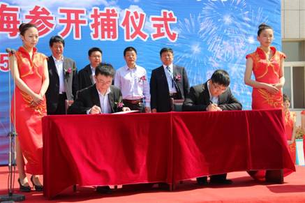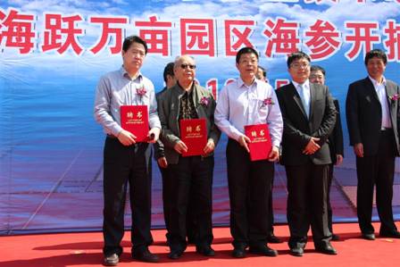 儀式上,金顯仕副所長代表黃海所與東營海躍水產(chǎn)科技有限公司簽訂了長期科技合作框架協(xié)議。今后黃海所將在刺參良種選育、苗種擴繁、池塘改造、水質(zhì)調(diào)控、高效養(yǎng)殖技術(shù)、附著基設(shè)置、飼料配制與投喂、疾病防控、精深加工等方面為東營地區(qū)海參高效產(chǎn)業(yè)化模式提供技術(shù)支撐。