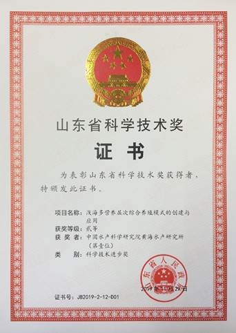 7月2日,2019年度山東省科技創(chuàng)新大會在濟南召開,表彰為山東省科技創(chuàng)新事業(yè)和經(jīng)濟社會發(fā)展做出突出貢獻的科技工作者。中國水產(chǎn)科學(xué)研究院黃海水產(chǎn)研究所蔣增杰研究員團隊領(lǐng)銜完成的“淺海多營養(yǎng)層次綜合養(yǎng)殖模式的創(chuàng)建與應(yīng)用”成果榮獲山東省科技進步二等獎。