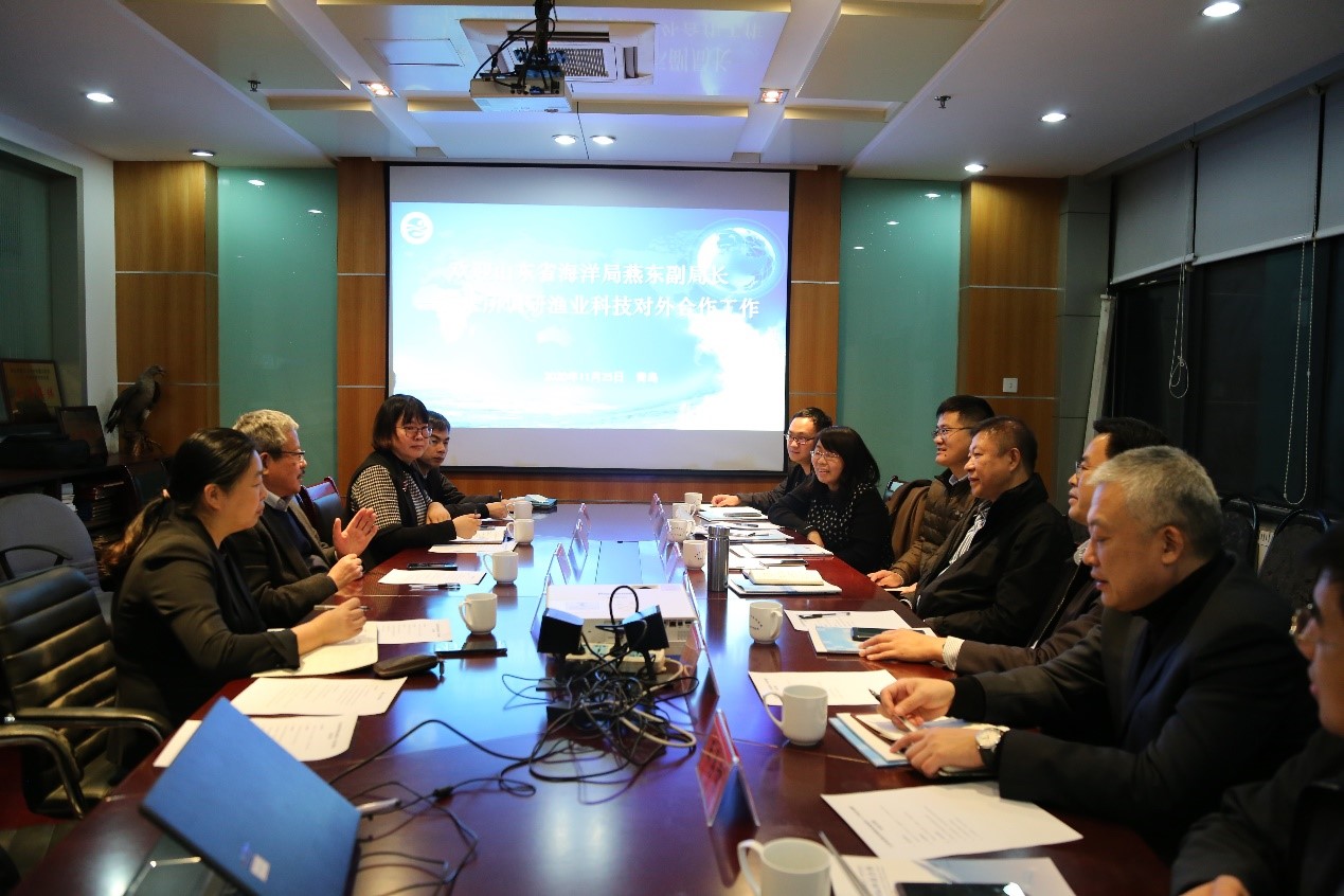 11月25日,山東省海洋局副局長燕東在青島市海洋發(fā)展局副局長孫云潭等陪同下到中國水產(chǎn)科學研究院黃海水產(chǎn)研究所調(diào)研對外合作工作。黃海水產(chǎn)研究所副所長李健及相關(guān)人員接待了燕東副局長一行,并進行了座談交流。