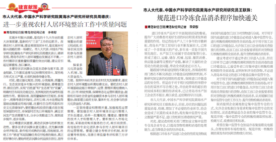 黃海水產(chǎn)研究所3位人大代表認(rèn)真履行代表職責(zé),圍繞產(chǎn)業(yè)發(fā)展、環(huán)境保護(hù)等熱點問題,提出了“建設(shè)全球海洋中心城市,要突出優(yōu)勢和特色”“進(jìn)一步重視農(nóng)村人居環(huán)境整治工作中質(zhì)量問題”以及“加強城市居民垃圾分類監(jiān)管”等提案和建議;針對當(dāng)前國外新冠疫情的不斷變化,冷凍水產(chǎn)品進(jìn)口包裝消毒的問題,提出“規(guī)范進(jìn)口冷凍食品消殺程序加快通關(guān)”的提案,彰顯了黃海水產(chǎn)研究所代表強烈的社會責(zé)任感,得到了多家媒體的關(guān)注和報道。
