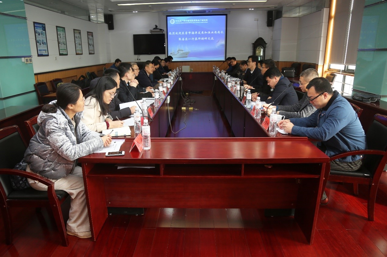 2月26日,東營市海洋發(fā)展和漁業(yè)局局長張善東、副局長張寶民及多家企業(yè)負責(zé)人一行到中國水產(chǎn)科學(xué)研究院黃海水產(chǎn)研究所交流訪問。黃海水產(chǎn)研究所副所長孔杰、成果轉(zhuǎn)化處處長王印庚及相關(guān)專家接待了張善東局長一行,并進行了座談。