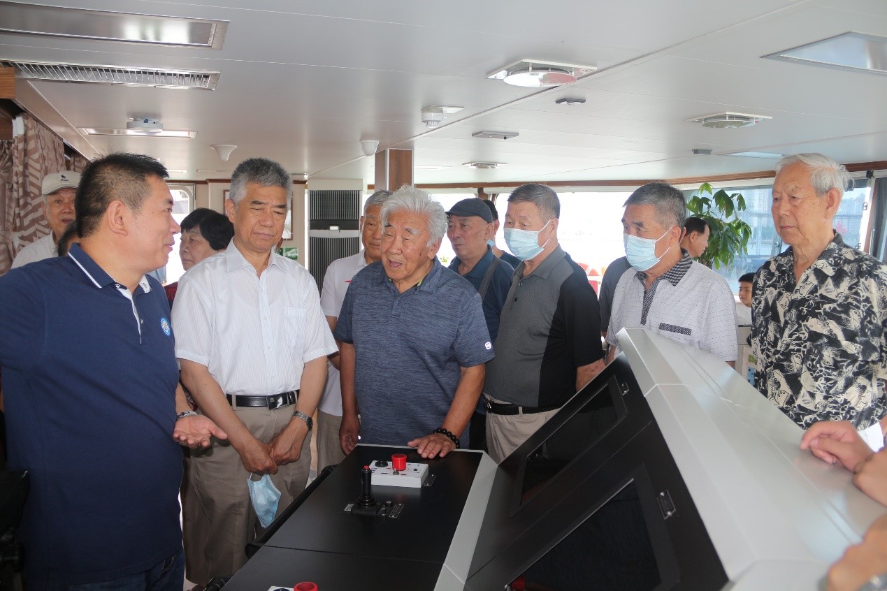 “藍海101”號調(diào)查船船長禹昊向大家詳細介紹了調(diào)查船的基本情況、性能特點、功能定位和承擔的科研工作等情況,并帶領(lǐng)大家參觀了調(diào)查船。參觀過程中,老同志們邊看邊問,置身于這樣一艘功能齊全、技術(shù)先進的現(xiàn)代化海洋漁業(yè)綜合科學調(diào)查船上,激動的心情溢于言表。